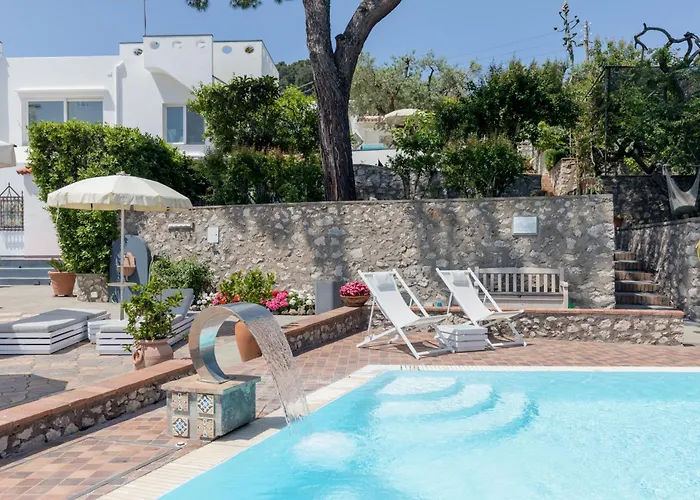 Das 4-Sterne-Hotel Suite Villa Carolina Capri liegt etwa 25 Gehminuten von Sorrente entfernt und bietet einen Infinity-Pool sowie WLAN in den öffentlichen Bereichen. Die Pension bietet 2 Whirlpools, und Gärten des Augustus ist etwa 1 km von der Unterkunft entfernt.